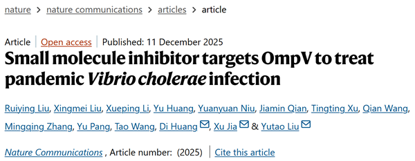 近日,永利集团3044浏览器、天津大学、南开大学研究团队的联合研究成果,发表在Nature旗下学术期刊Nature Communications. 该研究首次揭示外膜蛋白OmpV的致病机制,并通过计算机辅助药物设计(CADD)筛选出靶向OmpV的高效抑制剂C607-0736,为霍乱治疗提供了全新靶向策略。我们教师刘兴梅博士、南开大学博士研究生刘瑞英、天津大学博士后李雪平、南开大学博士研究生黄彧为论文共同第一作者,天津大学刘郁涛副教授、南开大学黄笛副教授、我们澳门3044永利官网院长贾旭教授为论文共同通讯作者。